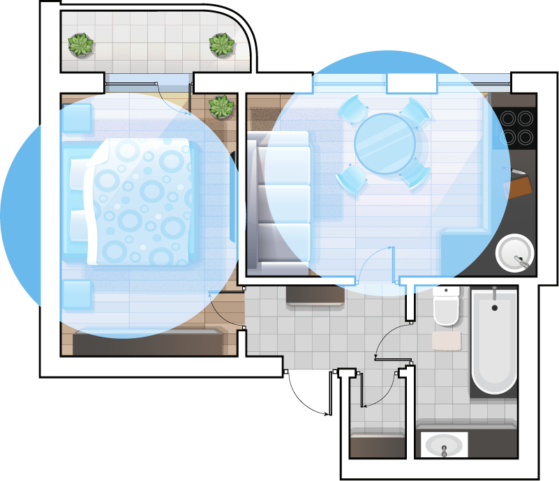 Die Regenerationskammer entsteht durch das Zusammenspiel mehrerer Biow-Einheiten, die sich an unterschiedlichen Stellen in einer Wohnung befinden.