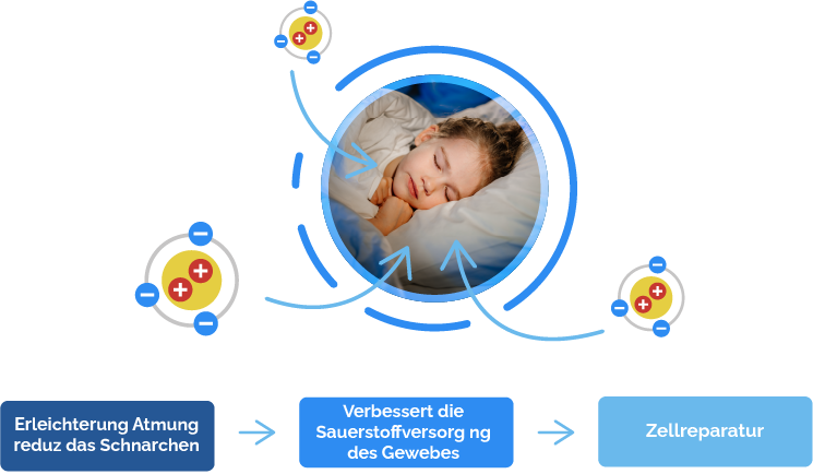 die Sauerstoffionen erzeugt, welche über die Lunge und die Haut in den Körper gelangen und einen therapeutischen Effekt haben, der die Atmung, die Muskelfunktionen, den Schlaf und die allgemeine Gesundheit verbessert.